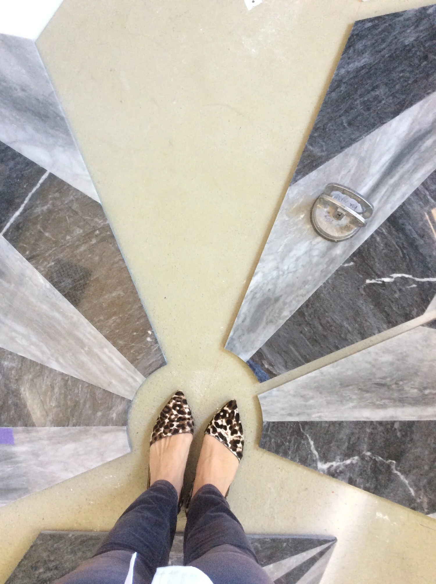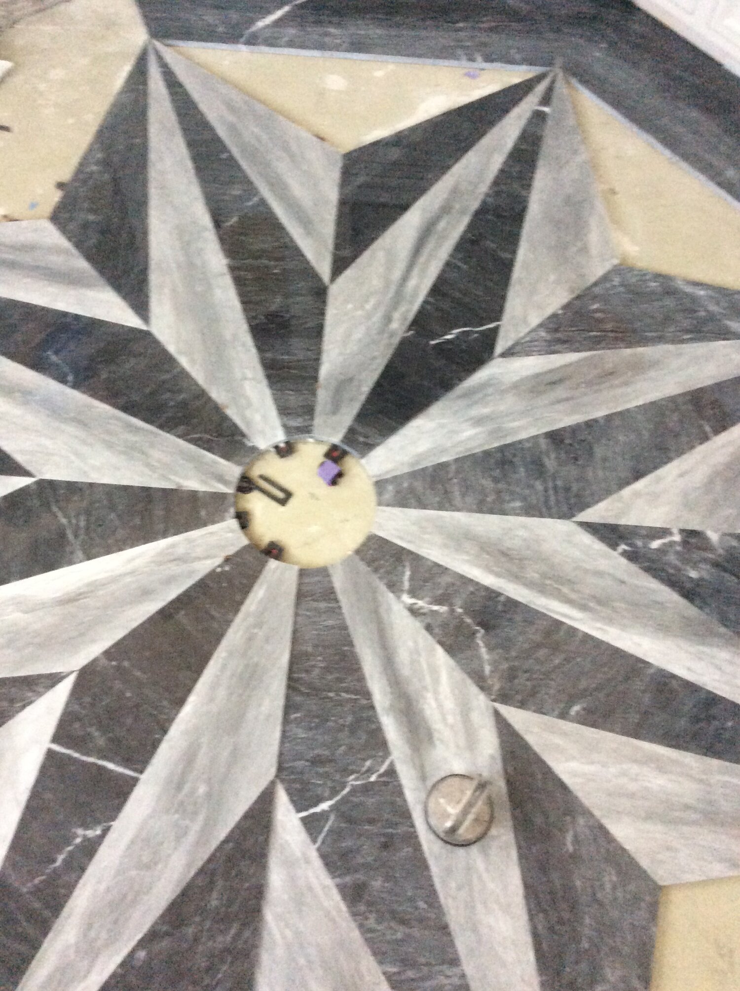 When I asked about it, they showed me that the stone had been cut in to such fine ‘points’ at the edges of the pattern, that there would have been no way to transport the singular cut pieces without them chipping or breaking apart… and so…. the pieces came to the site like this!